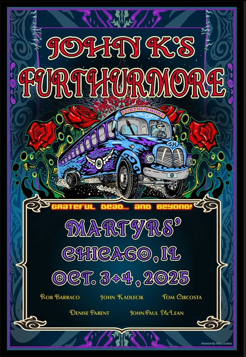 🎸 Hey now! Don’t miss John K’s Furthurmore performance in Chicago on October 3rd & 4th. Co-founder of Dark Star Orchestra and lead guitarist for Furthur with Weir & Leshmore