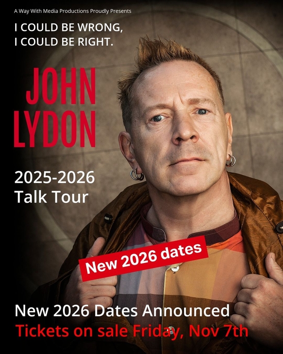 Tickets for the John Lydon Winter 2026 Talk Tour dates are now on sale.
