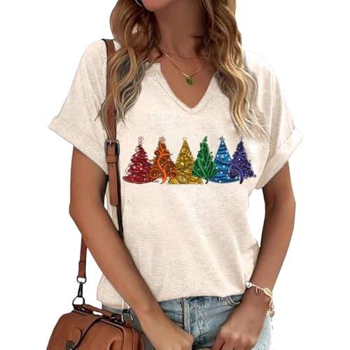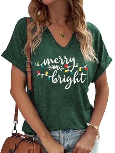 Womens V Neck Christmas Shirt Merry C...