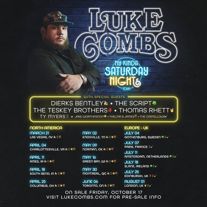 Join/login to my fan club at https://www.lukecombs.com to receive pre-sale info (info amore