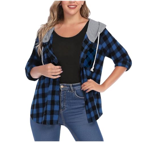 Women's Buffalo Plaid Hoodie Shirts L...